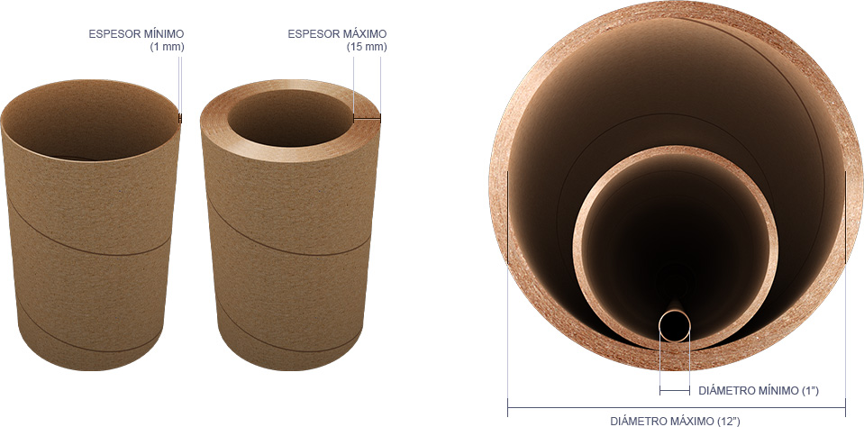 Fabricamos cores en gran variedad de espesores, diámetros y longitudes según su requerimiento, acabados en Bond Blanco o Etiqueta según su necesidad.